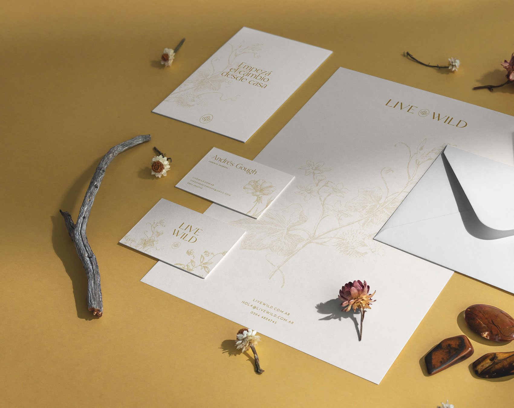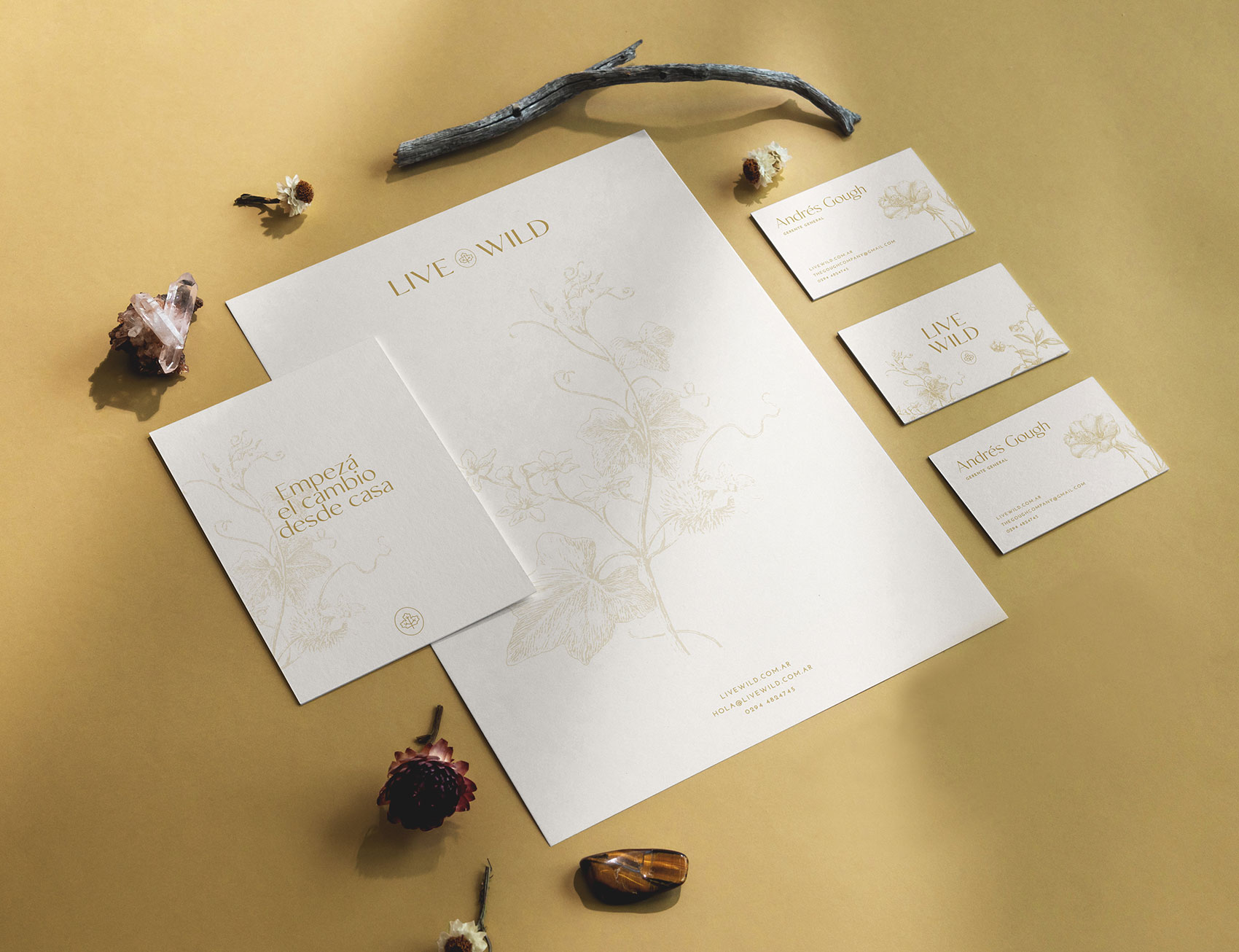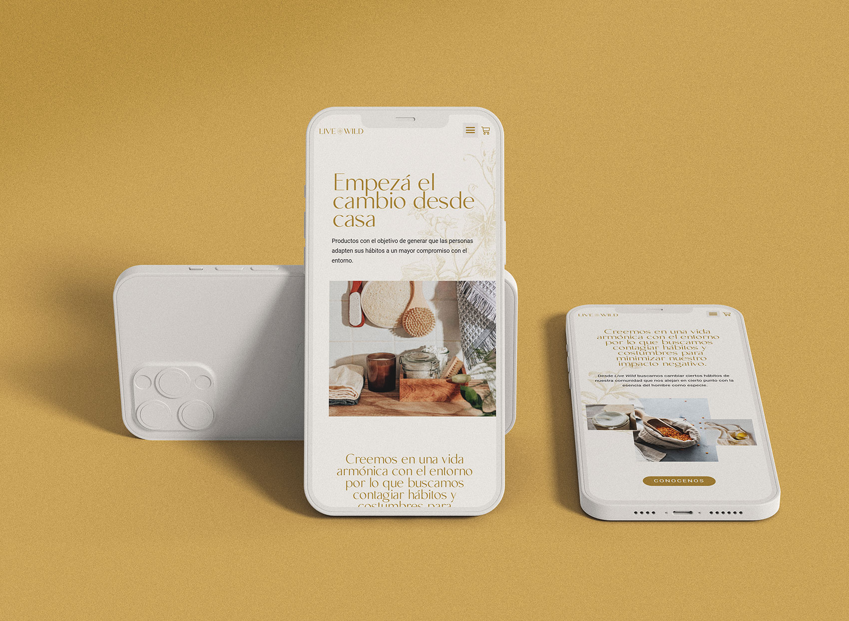 Con la premisa de transmitir calidad, calidez y cierta delicadeza, elegimos una paleta de colores con centro en el ocre dorado, junto una familia tipográfica que combina modernidad con elegancia, y una serie de ilustraciones florales. Una vez definida la identidad, trasladamos el concepto visual de marca al desarrollo de un sitio web adaptado para todos los dispositivos y listo para vender de forma online.