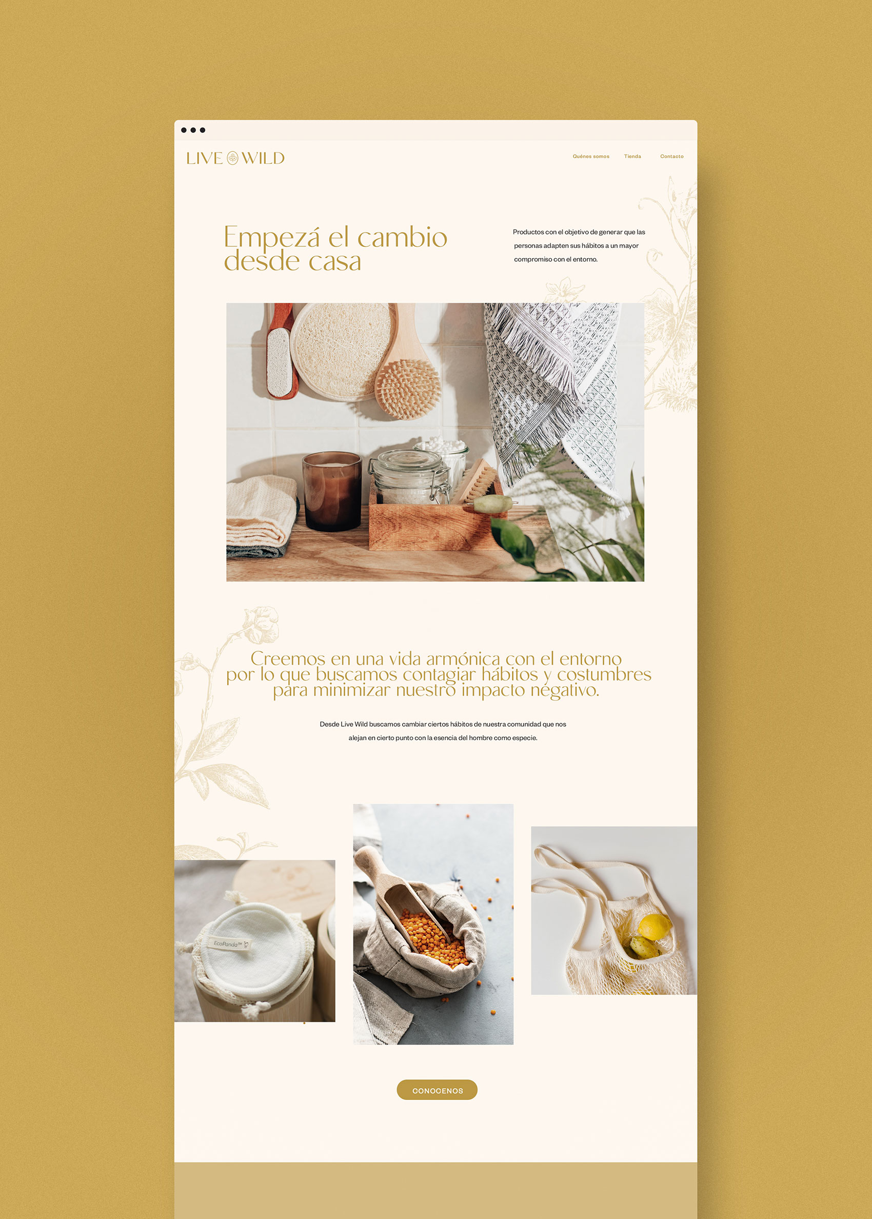 A través de la venta de productos de uso cotidiano, Live Wild busca contagiar hábitos y costumbres para minimizar nuestro impacto negativo. Para impulsar la marca y llevarla a un nuevo nivel, hicimos un rediseño integral de la marca y un sitio web con tienda online.