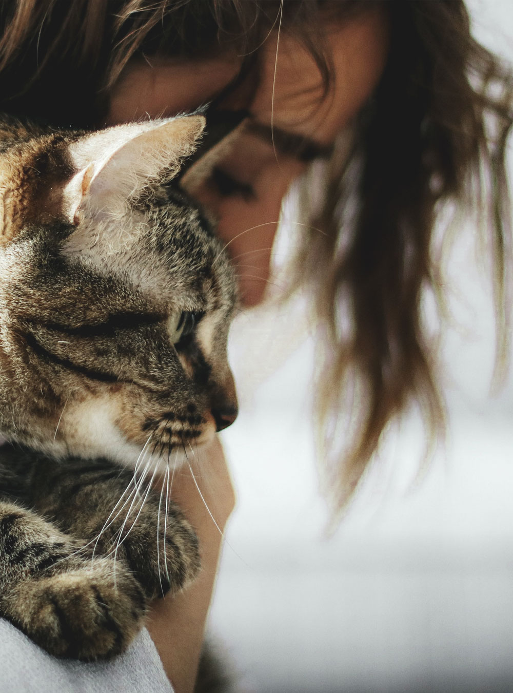 Sin dejar de lado la intención de comunicar su buena capacidad y profesionalismo, quisimos reflejar la relación amorosa de Clara hacia los animales. La forma más precisa de lograrlo, fue a través de la ilustración: realizamos una mujer abrazando a su gato, de manera sentida y presente. Con un estilo de trazo simple, que contribuye a comunicar cercanía. Y en compañía de una tipografía concisa y contundente.
